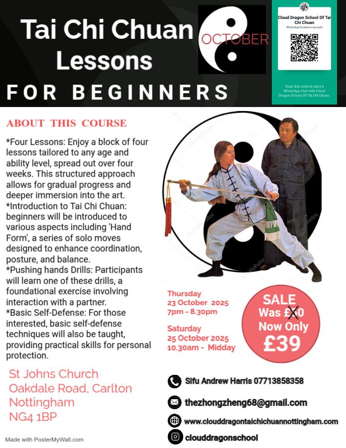 New students can join The Cloud Dragon School. There is space available at the regular class sessions, so please come along! Please enquire by calling, texting or emailing Andrew to check availability and to book a place.