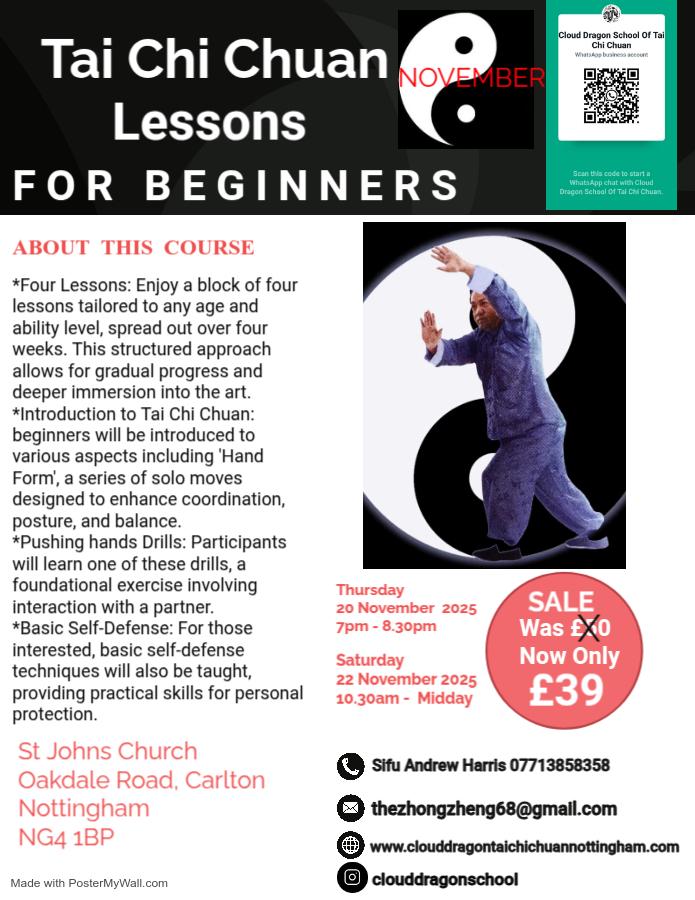 New students can join The Cloud Dragon School. There is space available at the regular class sessions, so please come along! Please enquire by calling, texting or emailing Andrew to check availability and to book a place.