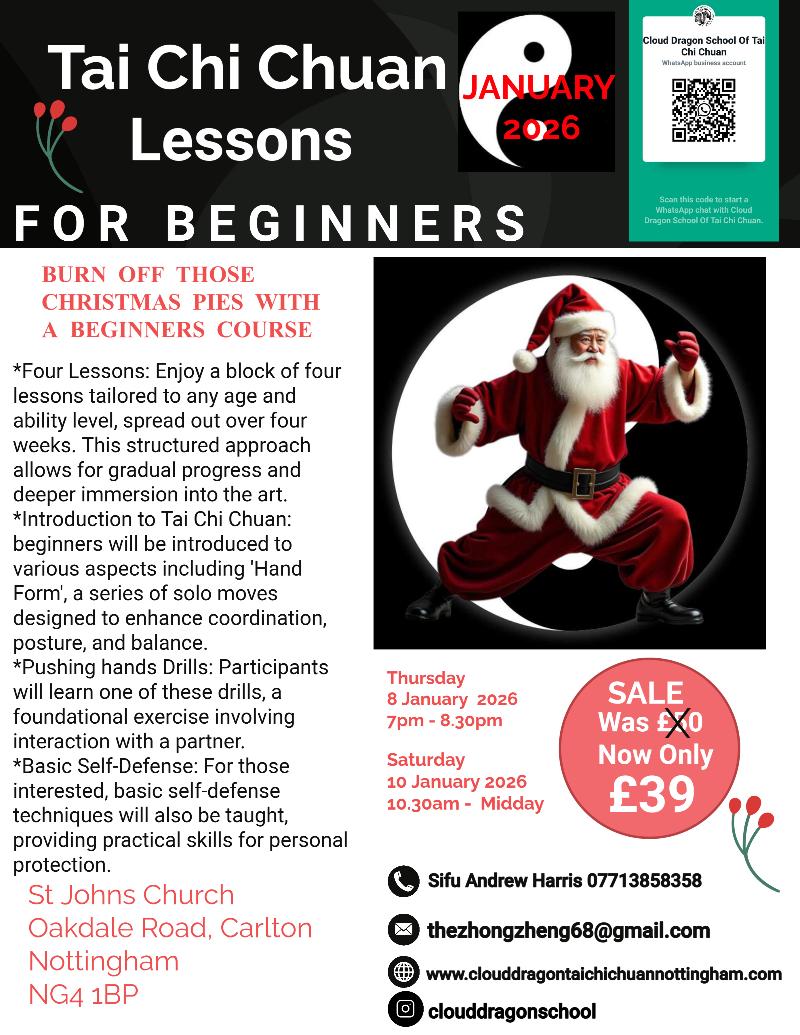 New students can join The Cloud Dragon School. There is space available at the regular class sessions, so please come along! Please enquire by calling, texting or emailing Andrew to check availability and to book a place.