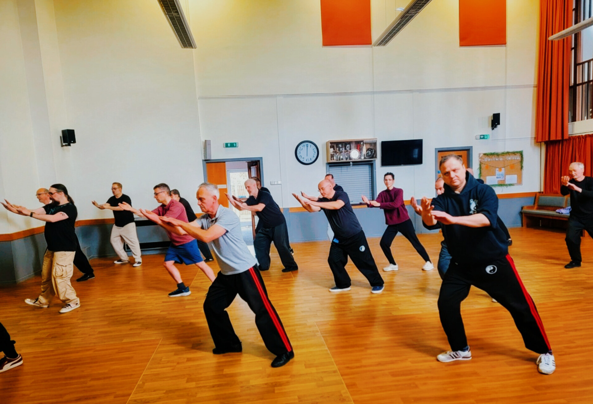 Sifu demonstrating, and students practising various Forms and Self-defence during Class and Workshops